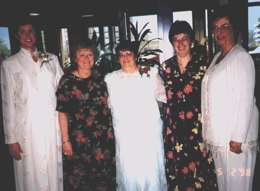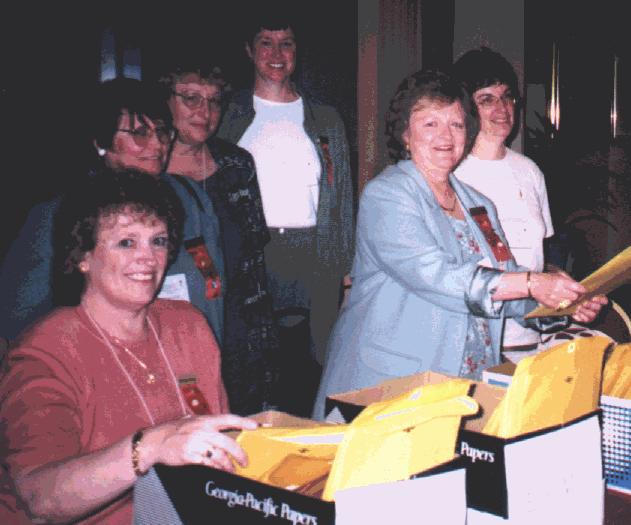 Top: DKG members attending the State Convention were greeted by smiling Gamma Alpha faces. Bottom: Part of the 1998-2000 Executive Board: President Jackie Smart, 1st VP Barb Broadley, Past President Alice Duke, Corresponding Secretary Cindy Dietz and 2nd VP Marie Canzoneri.