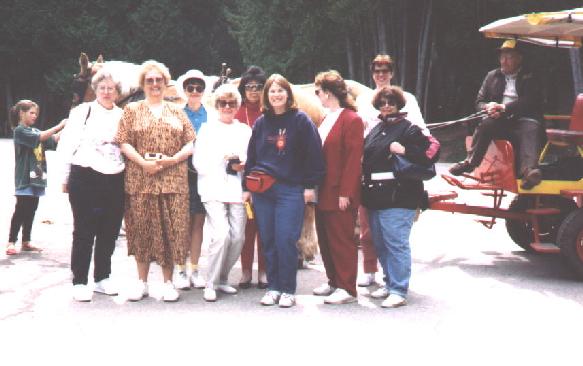 Gamma Alpha was in attendance at the 1991 State Convention at Mackinac Island. Front row: Esther Loskowske, Marie Canzoneri (out-going Gamma Alpha President), Nancy Bielik, Sandy Becher, Susie Miller and Alice Duke (in coming President). Back row: Fran Saenz, O.C. Ward (resigned) and Jackie Smart. See you on the long white porch for cocktails!